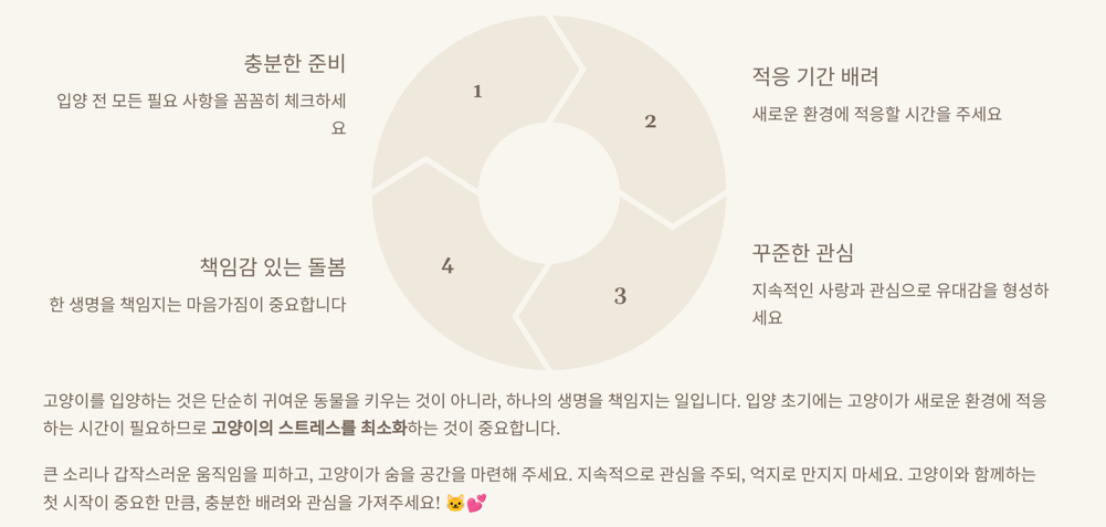 고양이와 함께하는 첫 시작이 중요한 만큼, 충분한 배려와 관심을 가져주세요! 😊