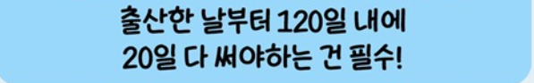 - 사용 횟수: 원한다면 4번에 나누어 휴가를 사용할 수 있는 선택권도 주어집니다. 다만, 출산한 날부터 120일 내에 20일을 모두 사용해야 하므로, 이 점은 반드시 기억해두세요.
