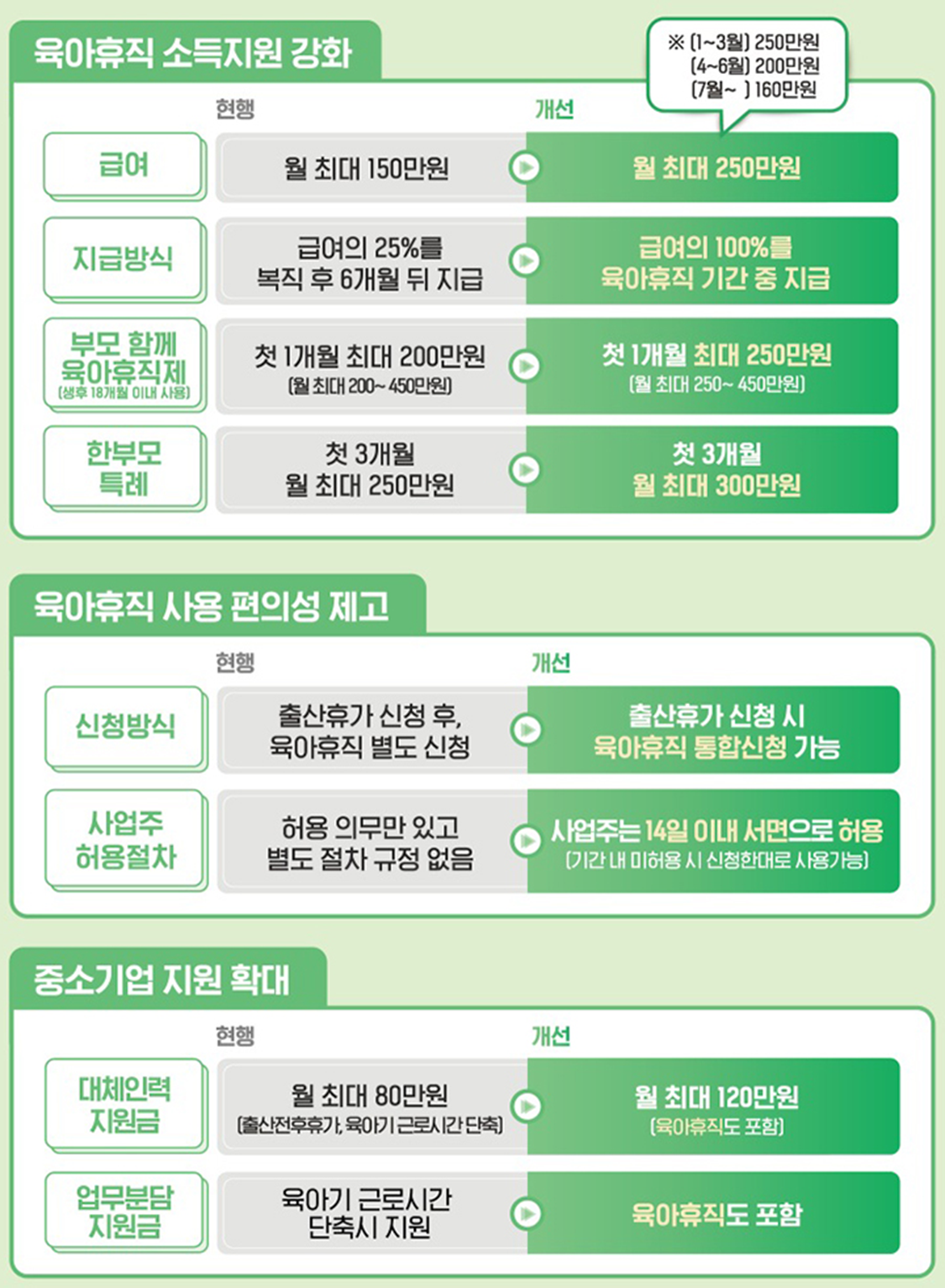 육아휴직 급여, 최대 250만 원으로 인상